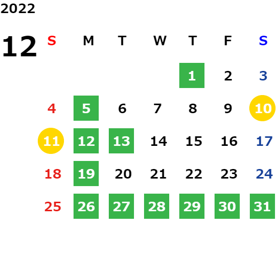 営業日カレンダー
